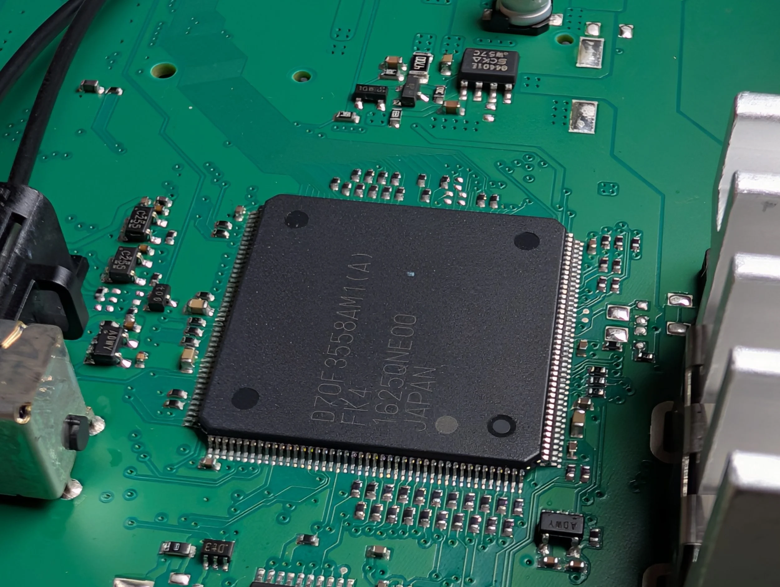 The Renesas RH850 processor found on the top side of the Layer 1 PCB.