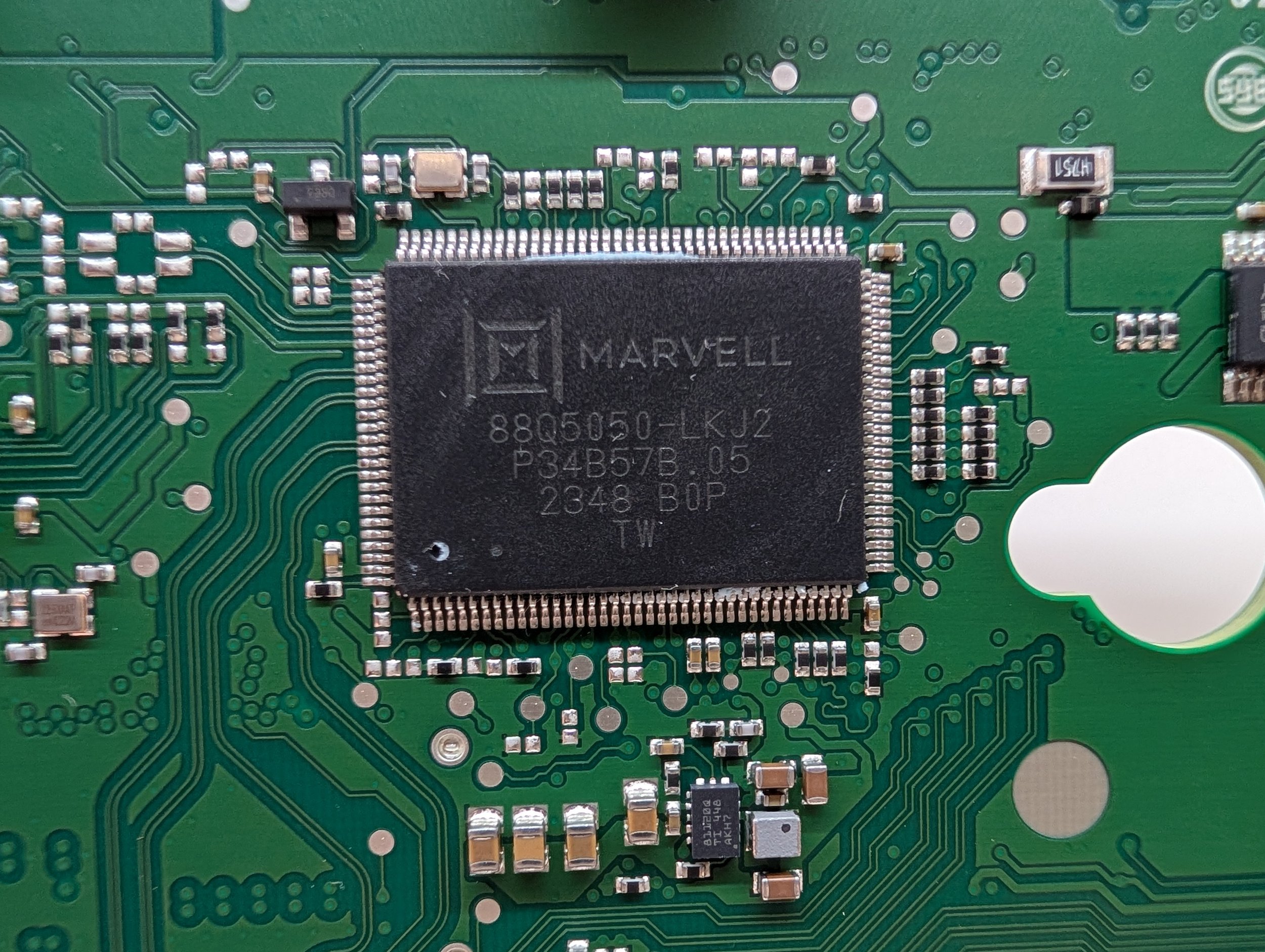 Flipping to the back side of the PCB, we can see many of the “supporting” ICs for various bits of device functionality - an Ethernet switch, another APiX 3 IC, an NXP WiFi/Bluetooth transceiver, and a few other small ICs dotted around the board.